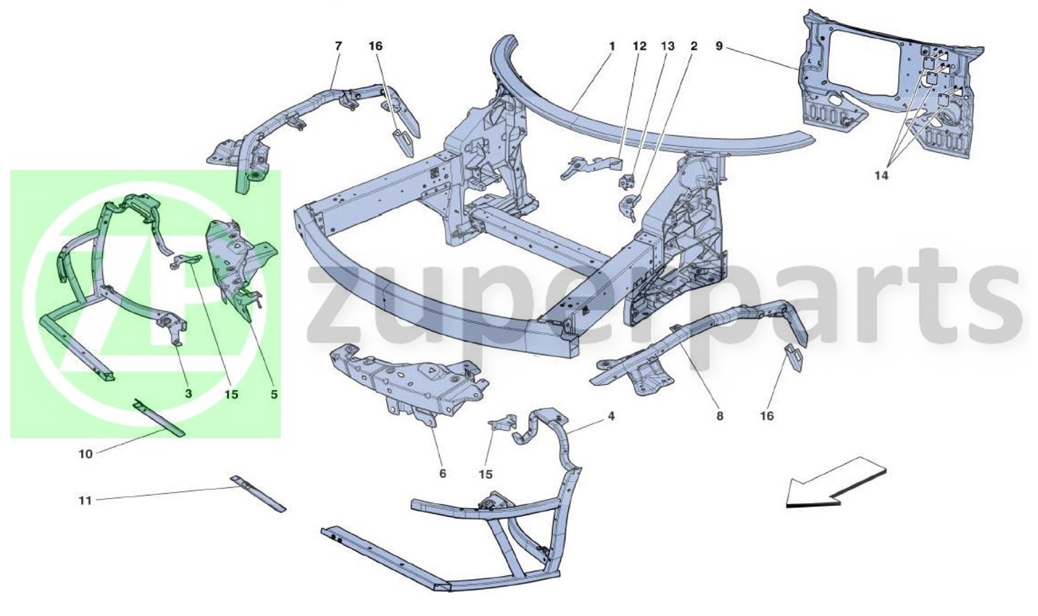 Ferrari 01. Ferrari 458 Speciale FRONT SUBFRAME (CHASSIS-985291962) Enquire Part#: 985291962. FRONT SUBFRAME Request ASM authorisation Not for GD. 458 SPECIALE.