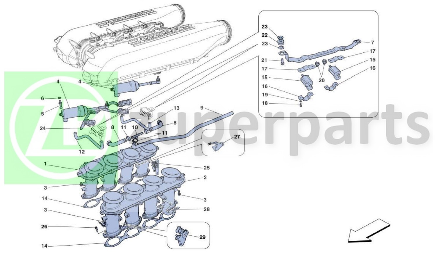 Product Description Enquire Part#: 305954. RH INTAKE MANIFOLD. 458 SPECIALE. Other Details Schematic Ref#: 1 Part#: 305954 Qty on Diagram: 1