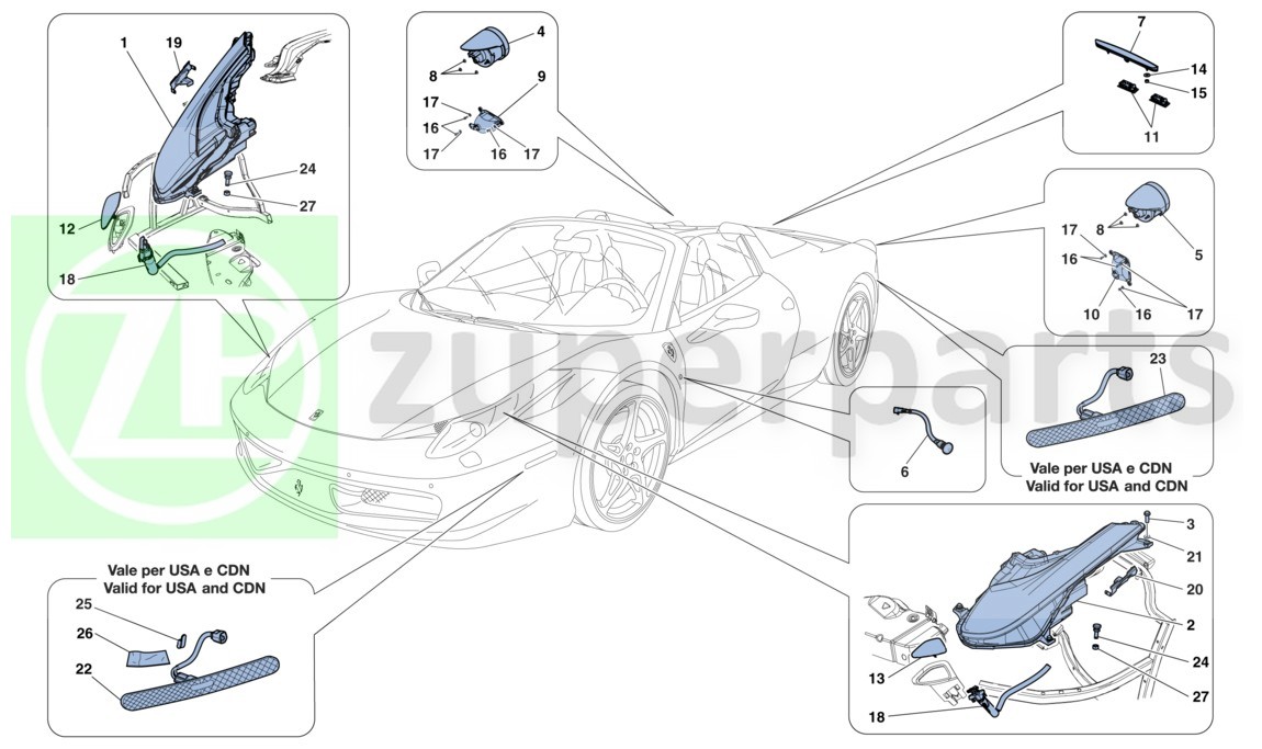 Ferrari 18. Ferrari 458 Spider COMPL. HEADLIGHT WASHER PIPE (Headlights-85267300) Enquire Part#: 85267300. COMPL. HEADLIGHT WASHER PIPE. Applicable from Ass. No. 120671. 458 Spider.