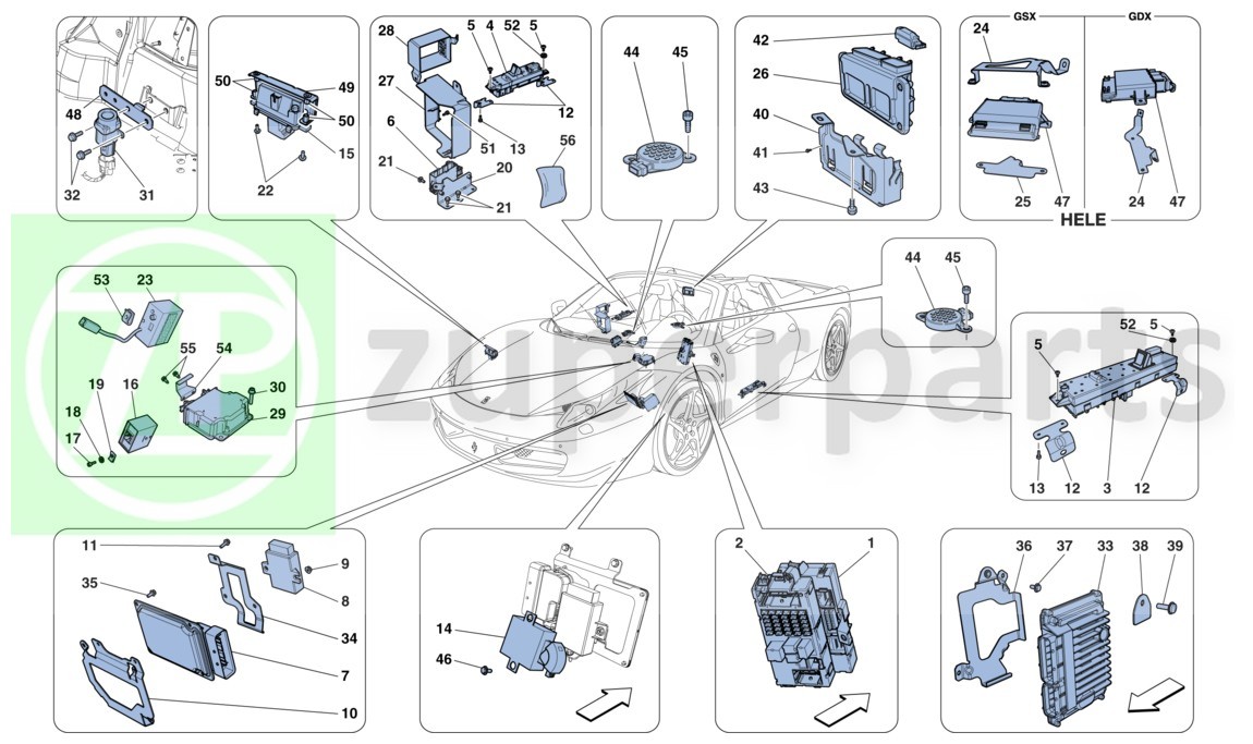 Enquire Part#: 299017. TYRE PRESSURE MONITORING SYSTEM ECU. Applicable from Ass. No. 124321- -Applicable after depletion of 237967. 458 Spider.